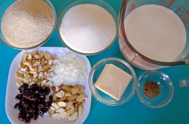a tablespoon of cashews and coconut for garnish. I used sliced, toasted almonds.